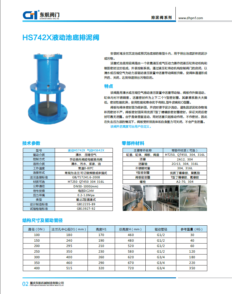 閥門特點(diǎn): 液壓缸內(nèi)部采用寸氟塑封處理,防銹防腐; 活塞密封件采用優(yōu)質(zhì)丁晴耐磨橡膠Y型圈結(jié)構(gòu),運(yùn)動(dòng)快速,張馳有力,密封性佳,長(zhǎng)久使用不怕漏水串缸; 閥桿采用優(yōu)質(zhì)不銹鋼材質(zhì),表面光潔度達(dá)到R0.8; 閥桿與閥體位密封采用3道進(jìn)口Y型圈密封,密封性能優(yōu)異,使用壽命超長(zhǎng); 閥座部份采用Q235鋼+EPDM全包覆橡膠結(jié)構(gòu)閥座,防腐耐磨,長(zhǎng)久耐用; 閥座開(kāi)啟高度高,實(shí)現(xiàn)高開(kāi)度,大排泥流量,對(duì)淤泥沉積不敏感; 閥體材質(zhì)為 QT450,表面處理為環(huán)氧樹(shù)脂噴涂,長(zhǎng)久使用亮麗如新; 此閥結(jié)構(gòu)合理,使用壽命長(zhǎng),根據(jù)客戶現(xiàn)場(chǎng)反饋有使用壽命達(dá)十年以上,零配件更換方便快捷,易損密封部件長(zhǎng)期有售,且價(jià)格合理! ![]() ![]() |