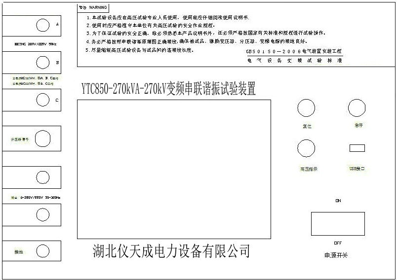 變頻串聯(lián)諧振試驗(yàn)裝置是電力工程人員經(jīng)常需要使用到的儀器,主要用來進(jìn)行交流耐壓試驗(yàn),具有升壓速度快,試驗(yàn)簡(jiǎn)單方便等諸多特點(diǎn),深受廣大電力工程人員的歡迎,由于其在試驗(yàn)時(shí)電壓較高,因此必須嚴(yán)格按使用說明來使用,同時(shí)還必須要熟知儀器的面板,本文就以YTC850變頻串聯(lián)諧振試驗(yàn)裝置為例,來詳細(xì)介紹變頻串聯(lián)諧振試驗(yàn)裝置的面板。