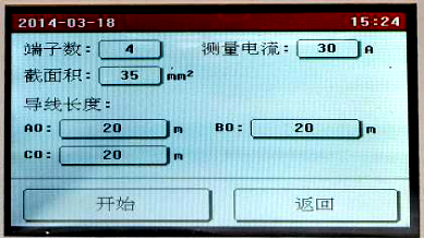 在主菜單頁(yè)面點(diǎn)擊“新建測(cè)試”,進(jìn)入測(cè)量前的接地線參數(shù)設(shè)置,如下圖所示: