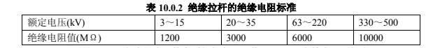 2.絕緣拉桿的絕緣電阻值,在常溫下不應(yīng)低于表 10.0.2 的規(guī)定。