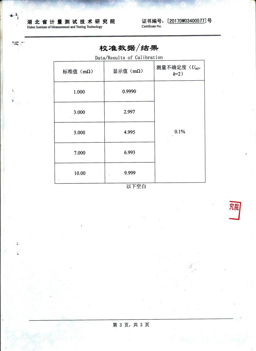 | 最小分辨率 | 0.1μΩ |