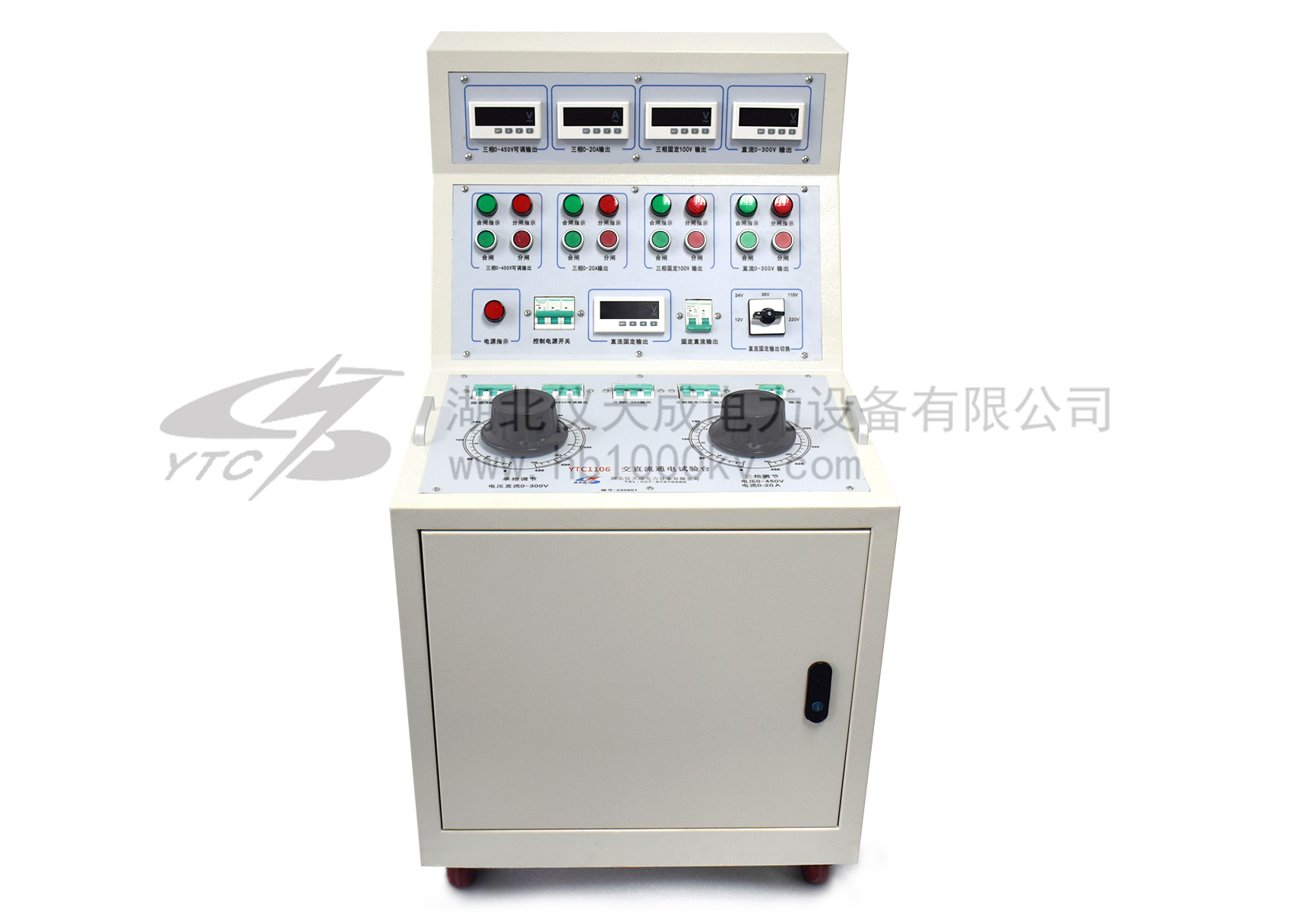 1、三相AC100V輸出(固定值) 一組 2、三相AC 0 - 50A輸出(〈10V,可調(diào)值) 一組 3、交流操作電壓輸出 AC 0 – 420V,220V時,電流小于10A 一組 4、直流操作電壓輸出24V.36Ⅴ.48Ⅴ.110Ⅴ.220Ⅴ 5、單相AC220V輸出(固定值,插座形式) 二組 6、三相AC380V輸出(固定值,接線柱) 二組 |
