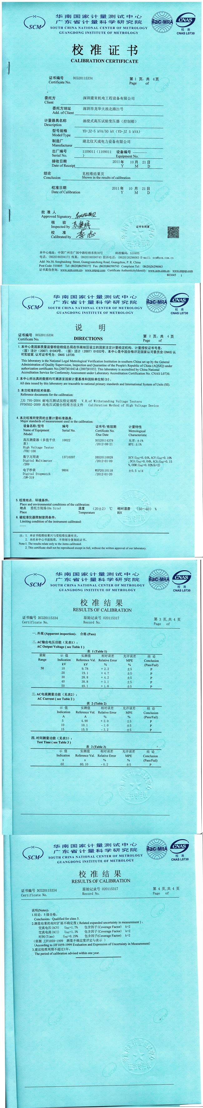 YD-JZ-5油浸式高壓試驗變壓器資質(zhì)證書