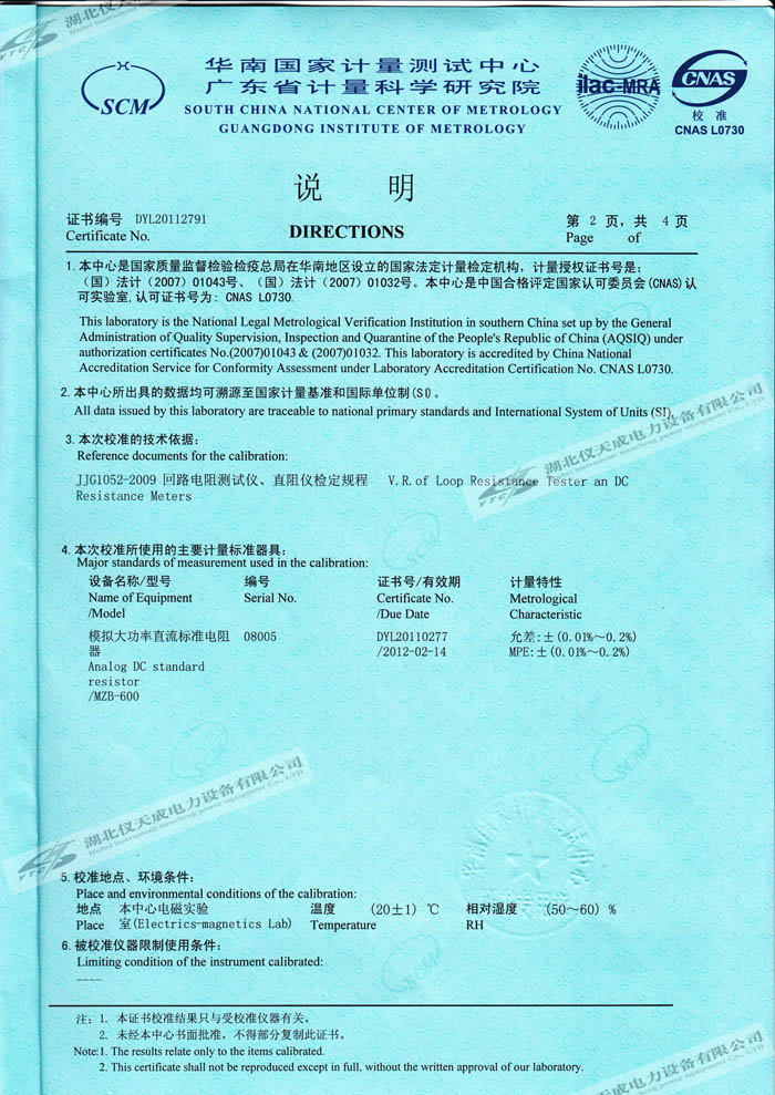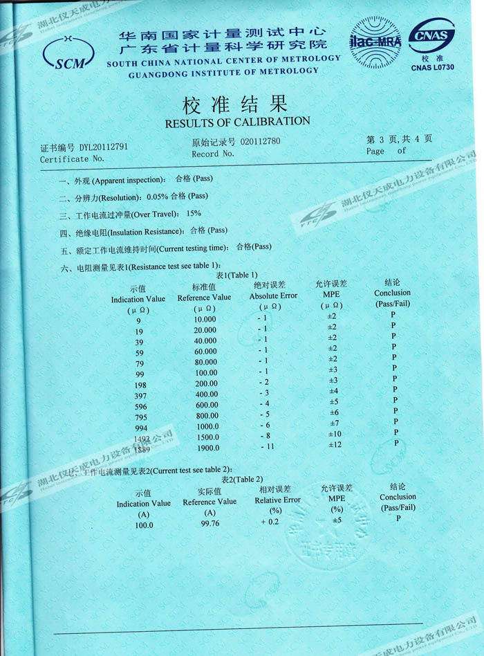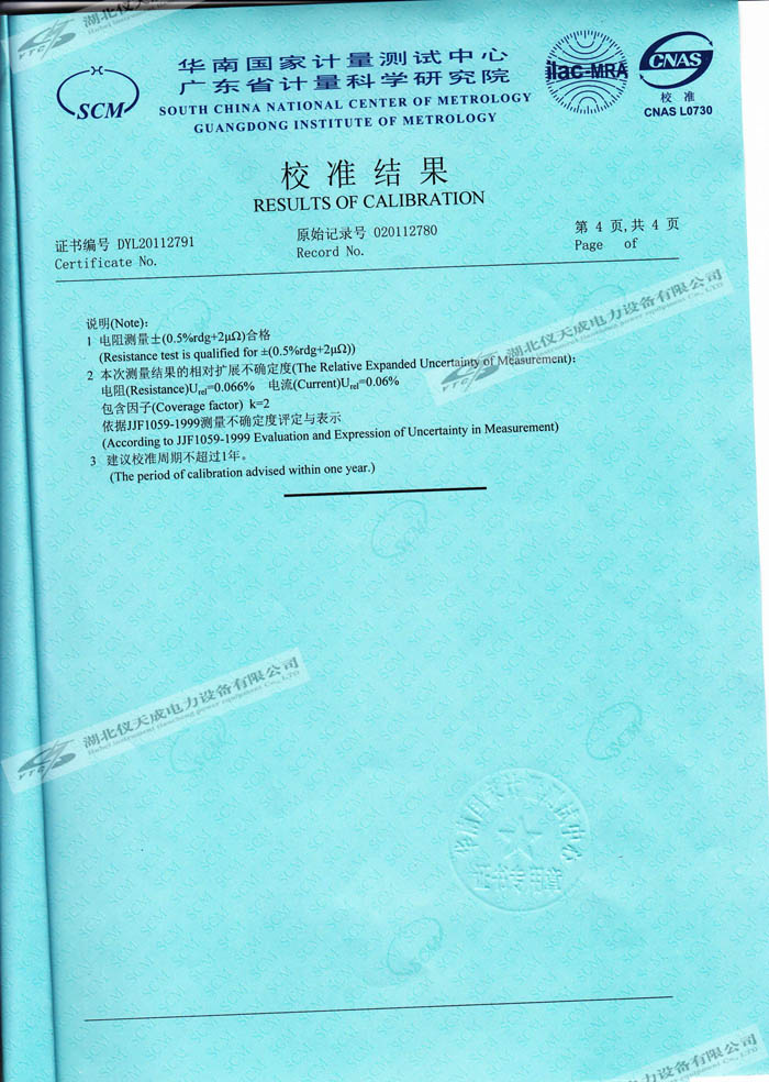 轉(zhuǎn)載:"YTC5501-100A 回路電阻測試儀的資質(zhì)證書" 請注明來源于儀天成電力。 更多技術(shù)問題請致電儀天成電力客戶服務(wù):027-87876585,技術(shù)部專線:027-87876585,在線客服:719388481