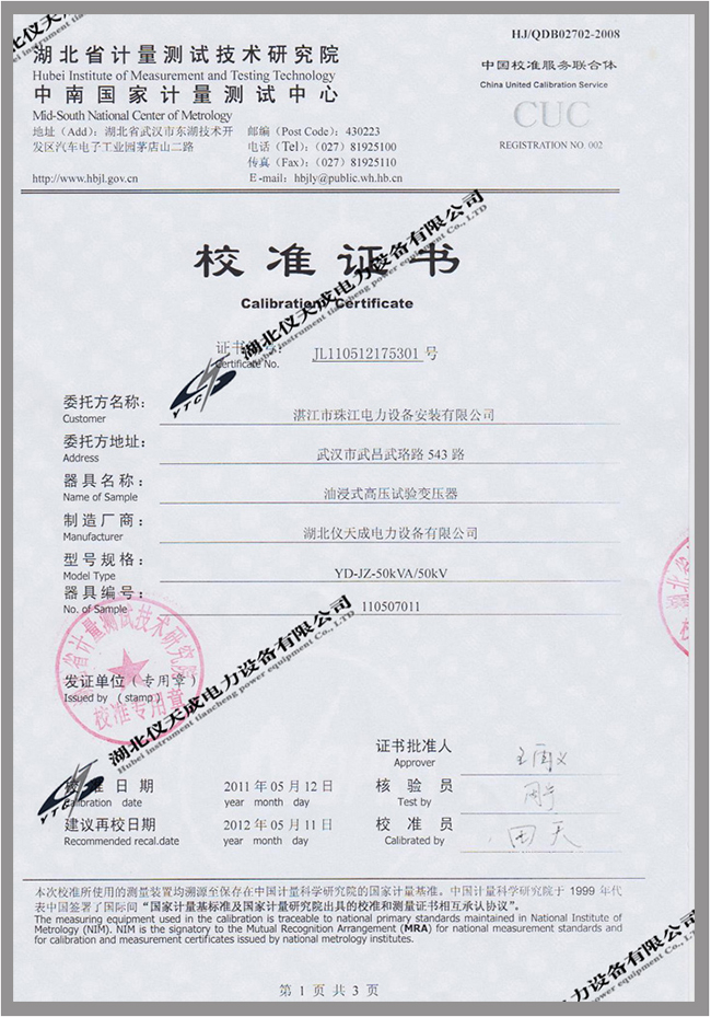 證書(shū)編號(hào):JL110512175301